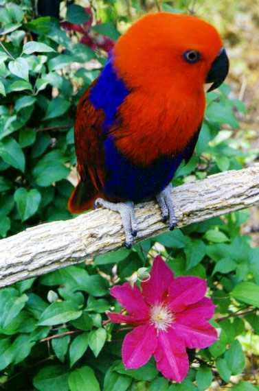 tropical rain forests. When food is abundant, Eclectus parrots gather