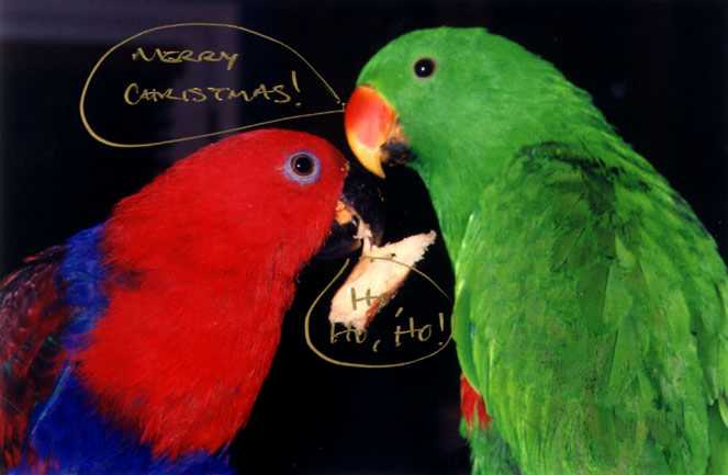 tropical rain forests. When food is abundant, Eclectus parrots gather