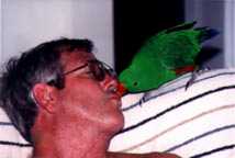 We have to come to enjoy breeding Eclectus more and more as time passes. As we add to the number of our extended families each year that adopt our Eclectus babies, we encourage everyone to keep very close touch with us, and we promise that we will always be here to answer questions and give advice. Throughout the year, we get phone calls, greeting cards, photos, and wonderful notes that keep us updated with cute stories about all our wonderful babies. We once read, "SUCCESS IS GETTING WHAT YOU WANT -- HAPPINESS IS WANTING WHAT YOU GET." These ongoing friendships with our adopting families are a totally unforeseen bonus of breeding parrots, and enrich our lives beyond measure. We love what we do, and each year, we are more fascinated by Eclectus. Breeding Eclectus to us is not a job -- we have made it a way of life.