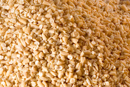 Steel-cut oats, golden in color, are whole grain groats (the inner portion of the oat kernel) which have been cut into pieces. Steel-cut oats take longer to cook than instant or rolled oats due to their minimal processing, typically 15–30 minutes. The flavor of the cooked oats is described as being nuttier than other types of oats, and they are also chewier. You can refrigerate leftovers for up to five days, or freeze it, as it does not suffer on the reheat. To make a parrot-sized portion, press a serving into an ice cube tray. When frozen, pop out the cubes of oatmeal into a plastic bag and store in the freezer. It is easy to daily put one of these cubes on top of the cup of moist-food assortment.